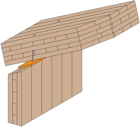 BBS Decken- und Dachelemente werden mit „Sichtseite unten, außer unterstes Element“ je Paket verpackt. Damit stellen wir den Schutz der hochwertigen BBS Sichtoberflächen gegen Verschmutzung und Beschädigung bei Be- und Entladung, Transport sowie Zwischenlagerung sicher.