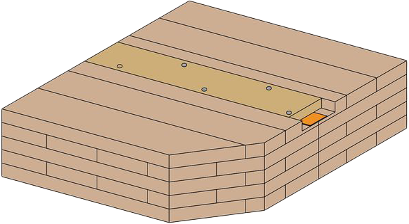 Auf Anfrage kann werkseitig eine vollflächig auf unsere BBS Elemente aufgebrachte temporäre Bauzeitabdichtung angeboten werden. Diese kann vorübergehend bis zu 4 Wochen als temporäre Bauzeitabdichtung bei Decken und Dächern eingesetzt und der freien Bewitterung (Schlagregen und UV Belastung) ausgesetzt werden. Die Verarbeitungshinweise des Herstellers der Dichtbahn sowie die Hinweise der Firma Binderholz zur verwendeten temporären Bauzeitabdichtung sind unbedingt zu beachten und einzuhalten.