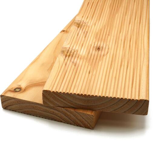 Lärche ist ein astiges Terrassenholz mit natürlichem Braunton und einem leichten Rotstich. Durch das kältebedingte Wachstum hat das Holz eine besonders feste Struktur. Die Äste sind fest verwachsen, eventuell zeigen sich vereinzelte, ausgebrochene Aststellen. Diese Nadelholzart ist eine preiswerte Alternative zu den Exotenhölzern.