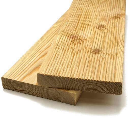 Die Douglasie ist eine heimische Holzart mit hellrot-brauner Farbe. In der Sortierung Gkl I/III besitzt diese Holzart fest verwachsene Äste, Splint, breite Jahresringe und vereinzelt Astfehler. Diese Nadelholzart ist eine preiswerte Alternative zu den Exotenhölzern.